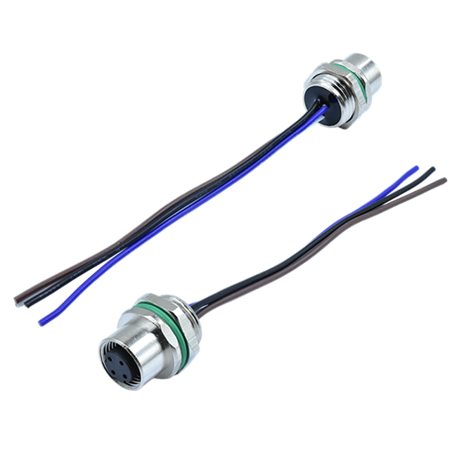 M12 D型4芯母头面板式(后锁)带线