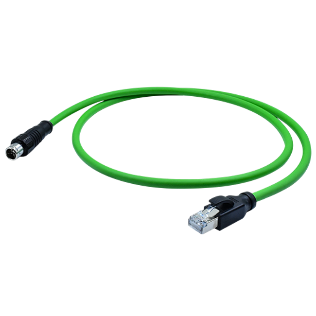 M12 X型8芯推拉自锁公直头对RJ45成型线PUR,L=1M