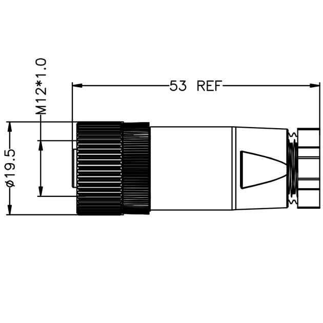 M12A型4芯母直头塑胶装配式(新款,锁螺丝,PG9)