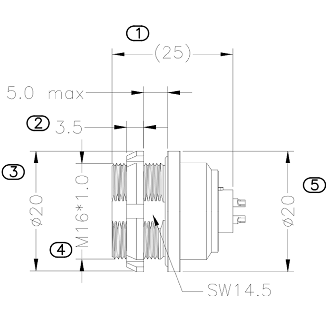 固定式插座,螺母固定,定位销(G)或定位销(A-M和R),后面板安装