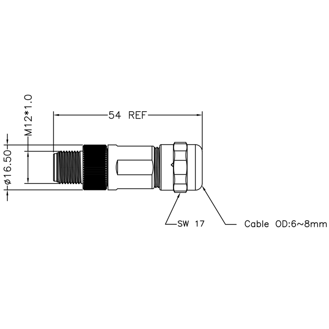M12T型4芯公头装配式圆形连接器